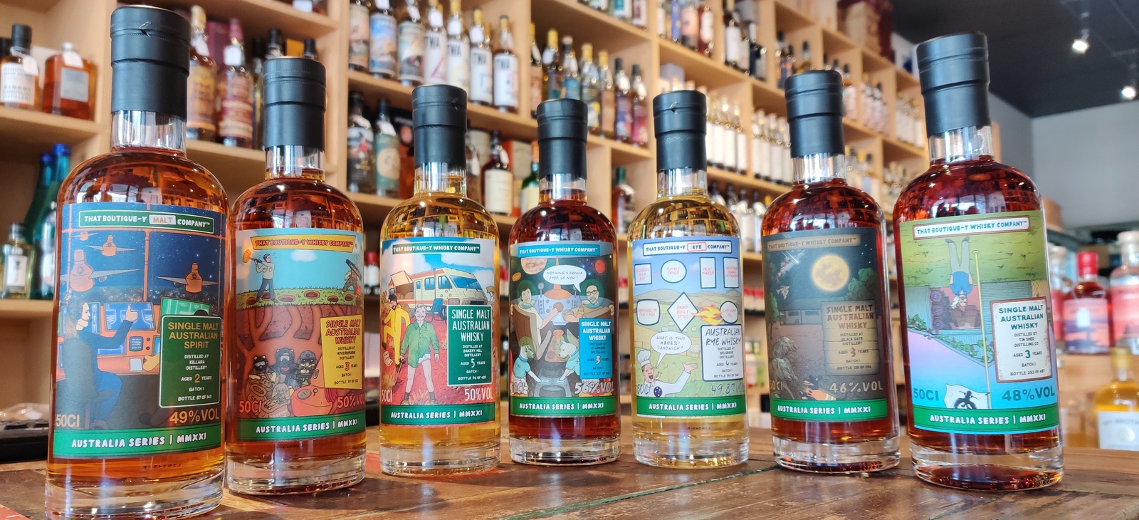 Presented here is the set of 7 Australian whiskies from That Boutique-y Whisky Company as part of their very first Australian release series.