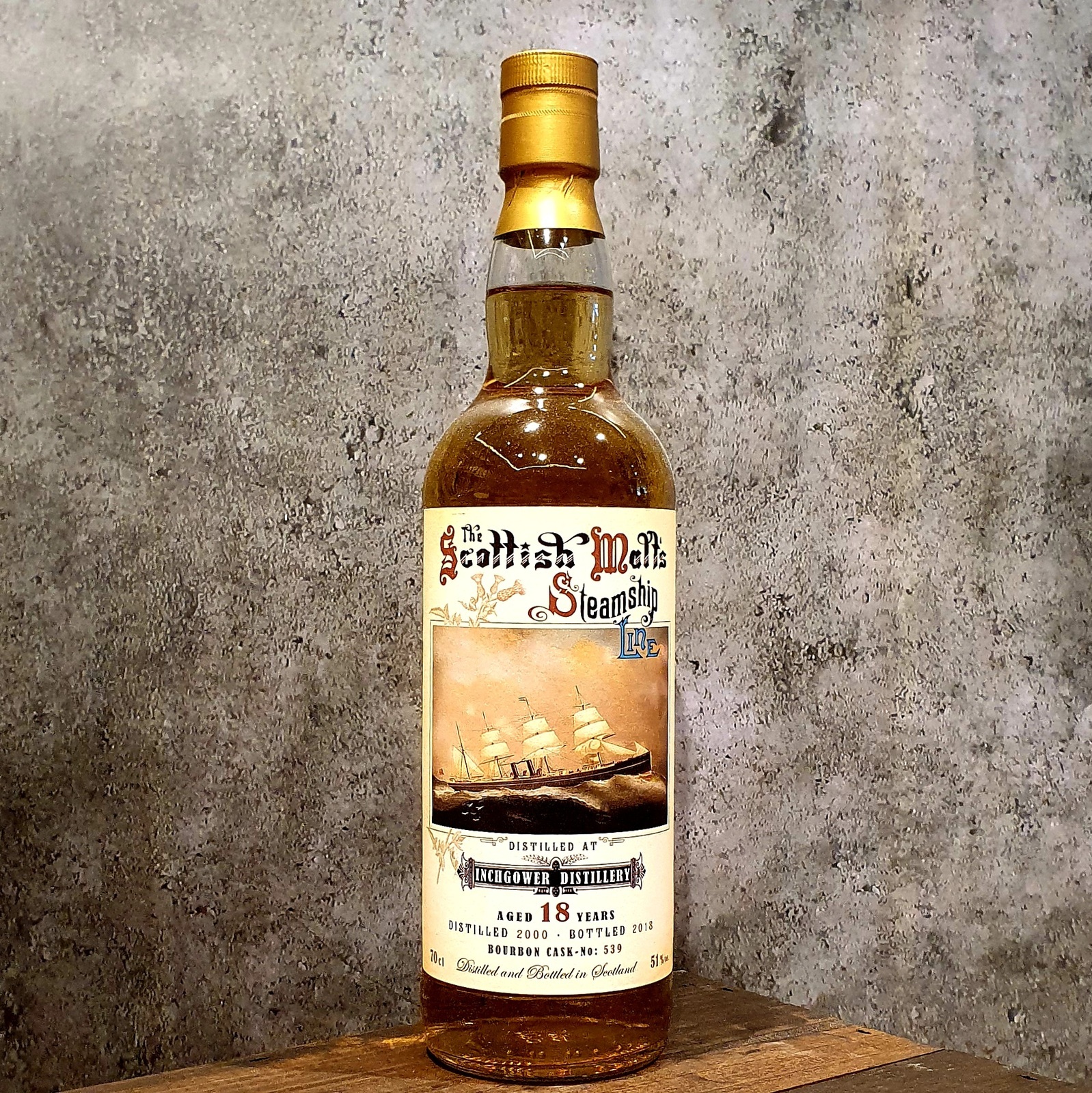 An 18 year old Speyside Malt from Inchgower distilled in 2000 and matured in a bourbon barrel as part of the Old Malt Steamships Line from Jack Wiebers.