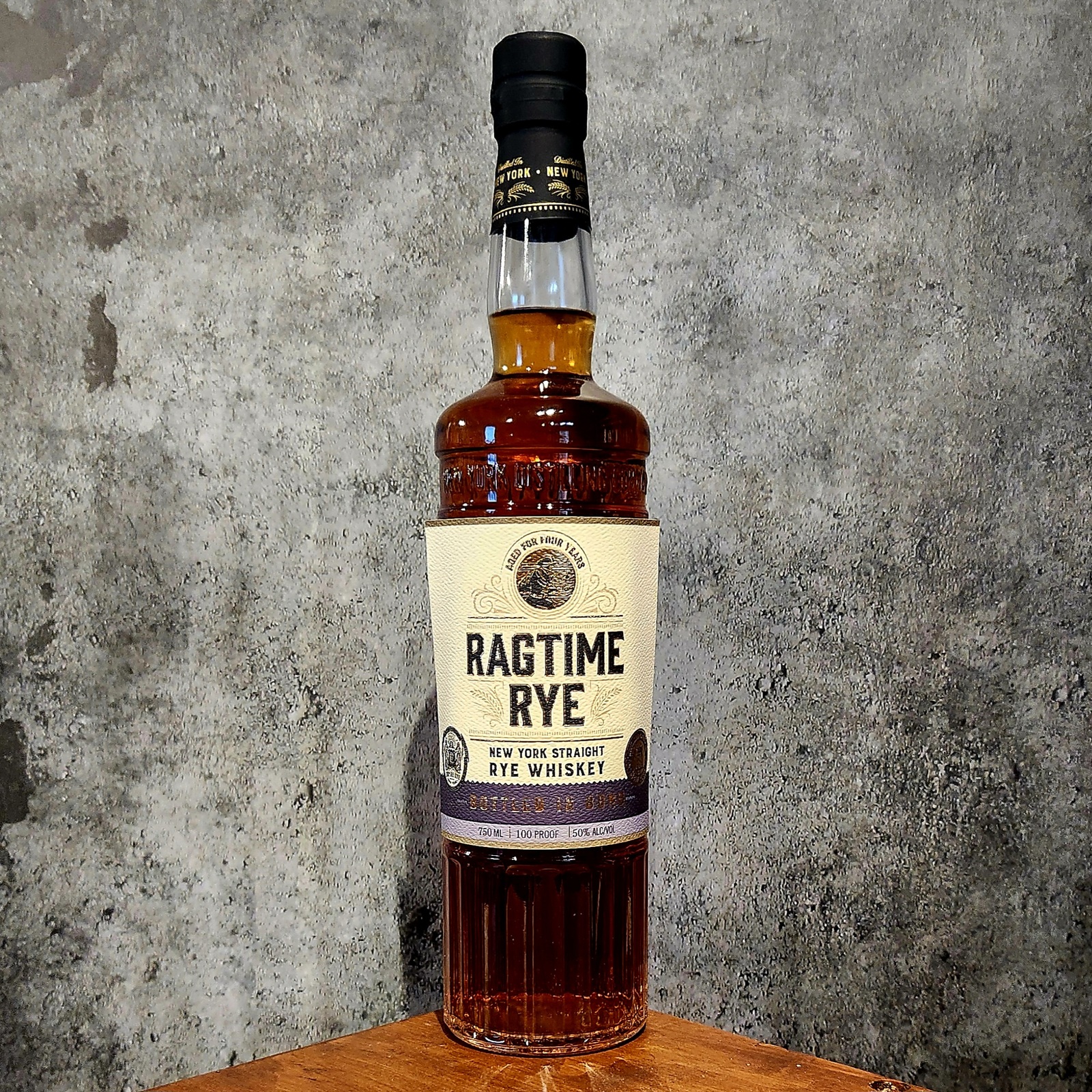 NY Distilling Co.'s Ragtime Rye Bottled-in-Bond is a robust, 100-proof rye whiskey, aged at least four years, made with a high-rye mash bill from New York grains.